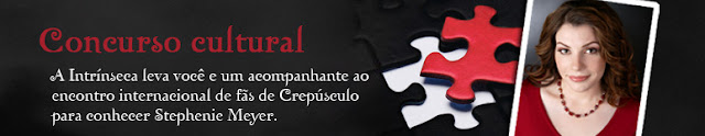Para concorrer, acesse aqui e responda à pergunta “Como Crepúsculo mudou minha vida?”. Depois, é só correr atrás de votos: sua resposta vai ficar on-line junto a um botão de “curtir” do Facebook — espalhe seu link e faça sua campanha. As dez respostas mais “curtidas” via Facebook ganham um kit completo deCrepúsculo e passam à segunda fase do concurso, quando serão avaliadas pela Intrínseca. Quem for mais convincente e criativo, fatura o primeiro lugar e vai participar do Encontro Internacional de Fãs de Crepúsculo curtir pessoalmente Stephenie Meyer!