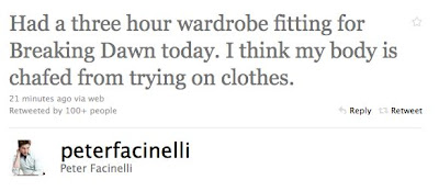 “Tive um teste de três horas para o figurino de "Amanhecer" hoje. Acho que meu corpo está irritado de provar roupas.”