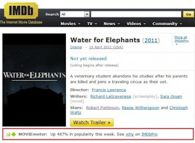 "Water For Elephants" sobe 487% em popularidade no IMDb