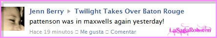 “Patterson (Pattinson) esteve no Maxwells de novo ontem!” (Maxwells é a loja de doces que Rob já tinha visitado anteriormente)