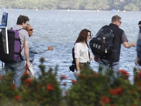 Uma hora antes, a autora Sthepanhie Meyer e os dublês- dentre eles o brasileiro Raphael Martins- deixaram o Rio de carro.